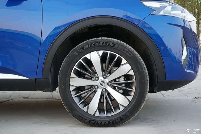 这是一款全新的车型,外观上哈弗F7x一改传统SUV的设计,尾部采用了溜背造型,整个车的线条很美,充满了运动、时尚的气息。前脸依旧是家族式的六边形进气格栅,不过车标却变成了黑色,而不再是以的红蓝标。配备了19寸的花瓣轮毂,看起来很大气,轮胎也是使用的米其林,看得出哈弗对这款车用心程度很高。