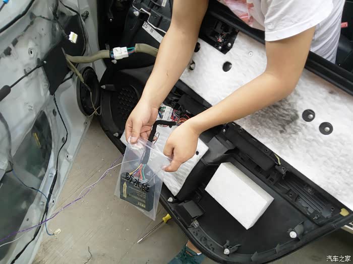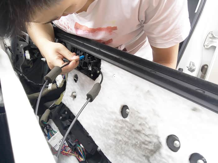 包好细节处理,线接好了就可以准备把升窗中控面板先给装上了