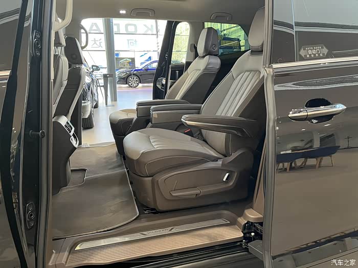进入车内,豪华氛围便扑面而来。高品质的内饰材料,搭配细腻的做工,彰显出高端品质。座椅舒适且调节功能丰富,车内空间宽敞,头部和腿部空间都十分充裕,让乘客在长途旅行中也能舒适自在 .威然Viloran提供宽敞的三排座椅空间,第二排配备行政礼宾座椅,具有可调平腿托和舒享按摩功能,确保长途旅行的舒适性。第三排空间也足够大,适合多成员家庭出行。后备箱容量可达2100升,满足长途旅行或日常购物的需求?