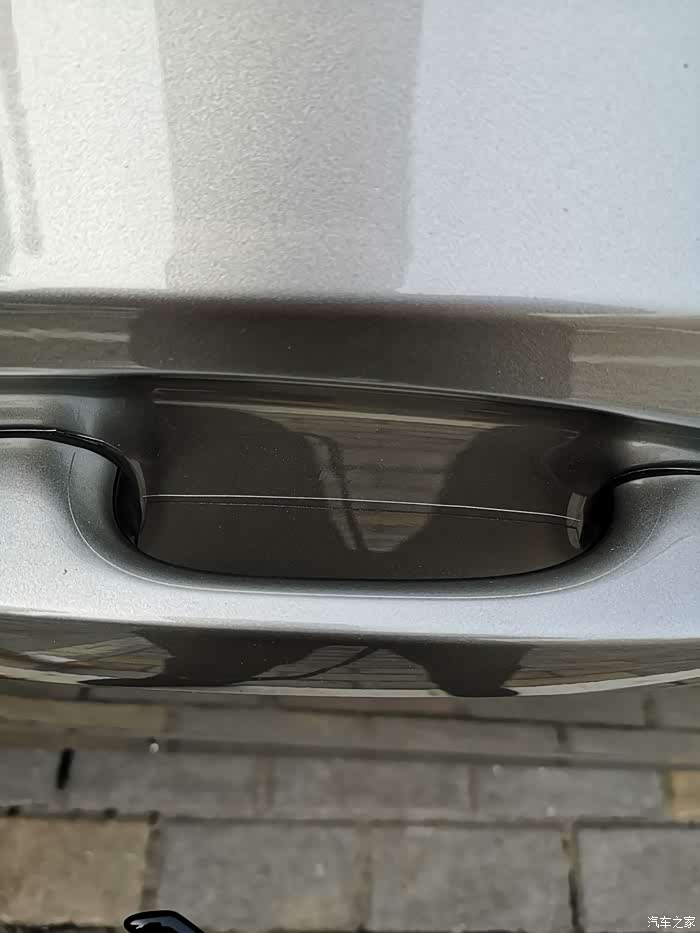 没有拆门把手贴车衣,把手内碗处留下的车衣接缝