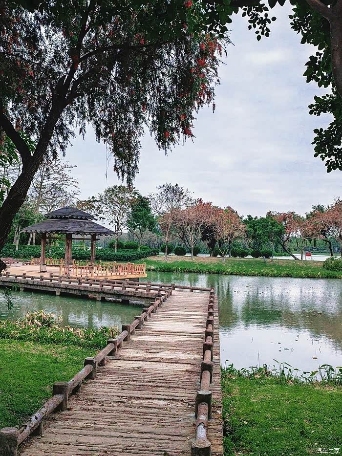 路程大概15公里,半小时后,我抵达了目的地。湿地公园到处郁郁葱葱,景色宜人。春风轻拂,带来阵阵花香,让人沉醉其中。心情也随着这美景而飞扬,仿佛整个世界都变得生动起来。