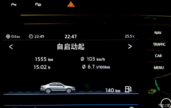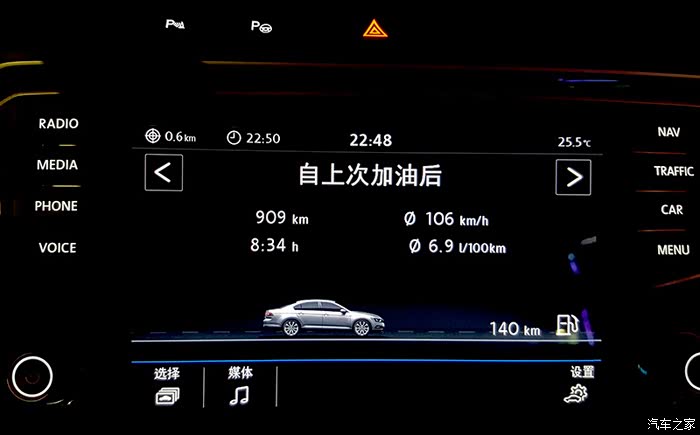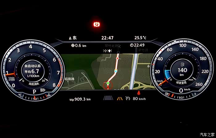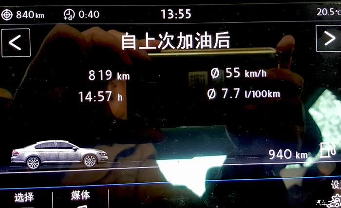 仪表显示平均油耗6.7,小表在安江清零后跑了909.3公里,续驶里程140公里,再跑下去,一箱油妥妥的1千多公里。过去B7L油箱更大4升,也能跑1千出头,但是车速绝对没有这样疯狂。