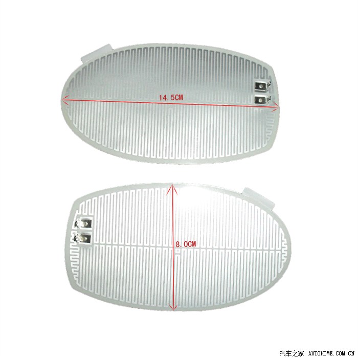 网上加热片的尺寸大小不一,小4的倒车后视镜的大小规格是16×10cm,我淘的这款是14.5×8cm,之所以选择小一点的,是因为考虑加热片贴在镜片后面时能留有较大的移动范围,使加热片的接脚能直接暴露在镜片后塑料板的孔位上,这样就不必裁割镜片底部塑料板的孔位了,小一点的加热片是不会影响镜片的整体加热功能的,这一点不必担心。