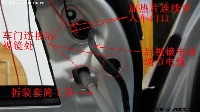 必须把车门内饰板卸下后进行。目的:安装加热片和走线。