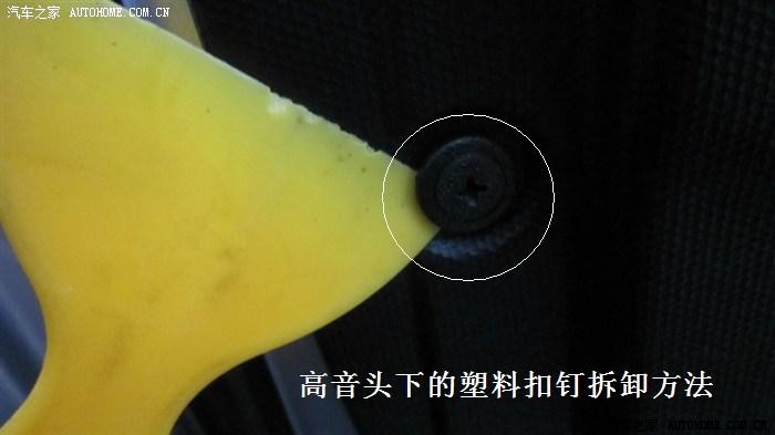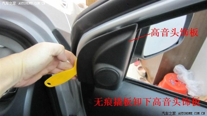 3.1.1高音头饰板的拆卸——只要用无痕撬板就很容易卸下。其目的是为了拆卸倒车后视镜总成和走线。