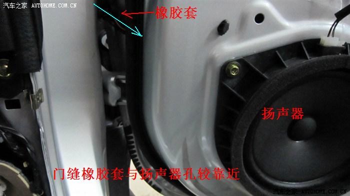 目的:方便把线穿过门缝抵达正副驾驶位。门缝的橡胶过线套与扬声器孔位较近,便于穿线。