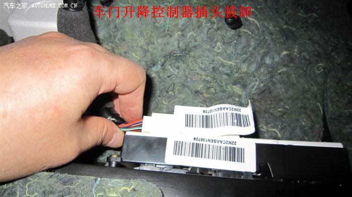 3.1.2.2——卸下车窗升降控制饰板,用无痕撬板撬开并向上提起就可以了,再拔掉升窗器插头。当然你也可以不拆升窗控制饰板这,拆了车门内饰板后直接拔掉升窗器插头即可。
