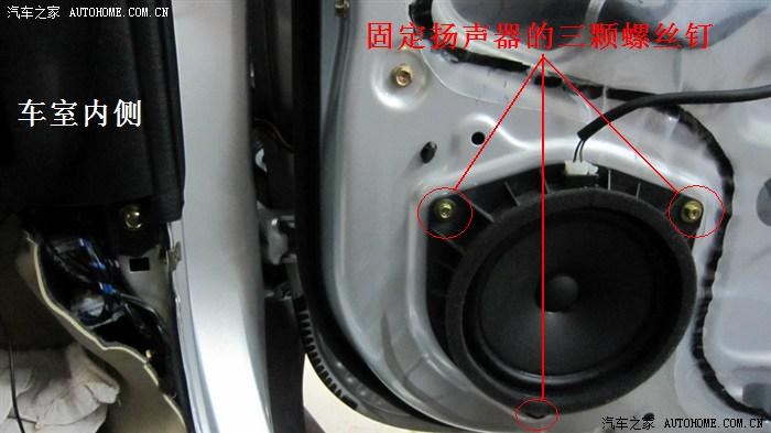 扬声器的拆卸方法很简单,松开固定扬声器的三颗螺丝即可,拆开后大家可以看看车门内侧是否有锈迹,可以顺便上漆保护一下,一举两得。