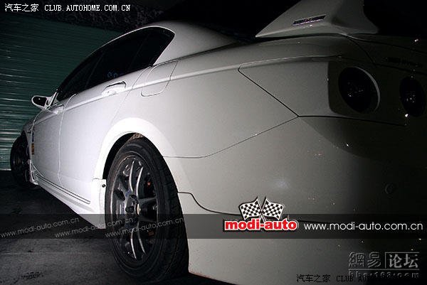 本打算外观的拍摄能在夜幕降临之前完成,不过由于车辆临时需要设计并安装排气泄压装置,无奈之下只能把拍摄时间推移到华灯初上之后。反正已经“深陷”的我们是绝不能放弃该次采访拍摄了,唯有再度上演夜间拍摄外观,随着闪光灯闪及之处,带领你的视觉欣赏正版MUGEN款暴力CP雅阁!