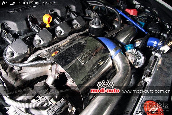 车主使用MUGEN包围大肆装横CP雅阁外观,最豪爽是选择了日本INSPIRE(美规雅阁在日本的名字)正厂的空力套件,正厂MUGEN零件价格昂贵众所周知了,那到底葫芦内里卖的是什么药呢??引擎舱里躺着的还不是红头又或者黑、蓝缸盖本田引擎,而是原装的R20A3,最大马力“仅”为156匹,相比起大家都耳熟能详的大众 1.8T涡轮机器最大150匹马力,走NA路线的K20A3已经可以在同级别车中奠定一个高水准。车主没有如前言里提及的更换高性能机器,而选择了就近原则外挂涡轮升级。的确,找机器的时间必须让车主有足够耐心等待,到时候还需要修改引擎桥码才能顺利安装,整车的控制总线、空调使用等都受到牵涉,有可能会影响车辆的正常使用,飞龙排气已有好几个落K20A的成功例子,不过与其冒这个修改大动脉的风险车主还是宁愿侧重外挂涡轮,只要把引擎缸内做强化,外挂涡轮就会有稳定的发挥。