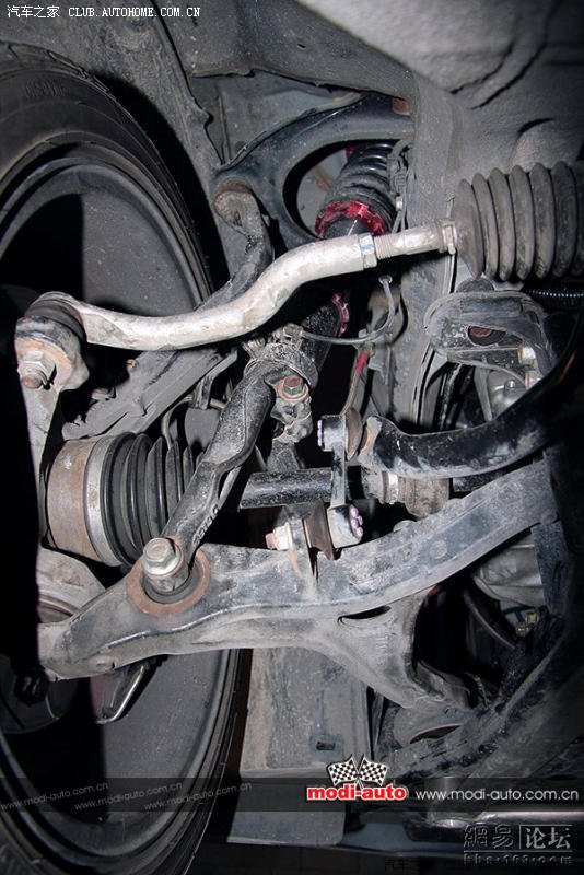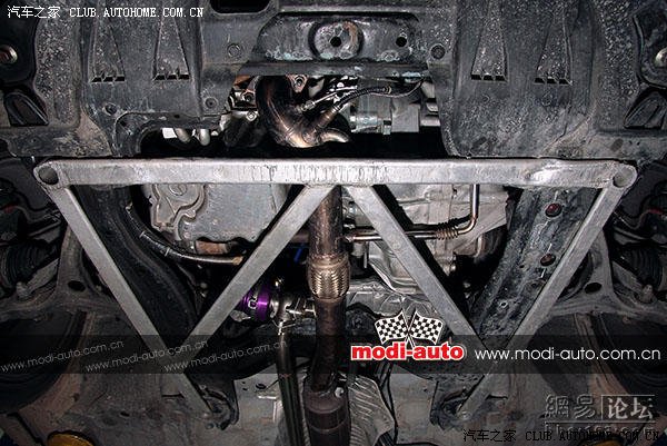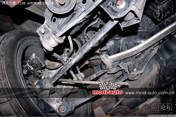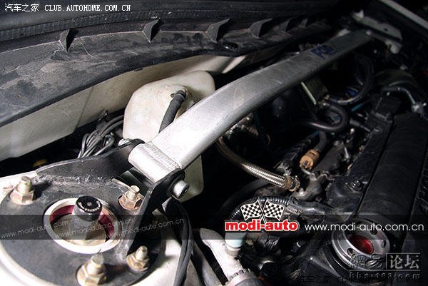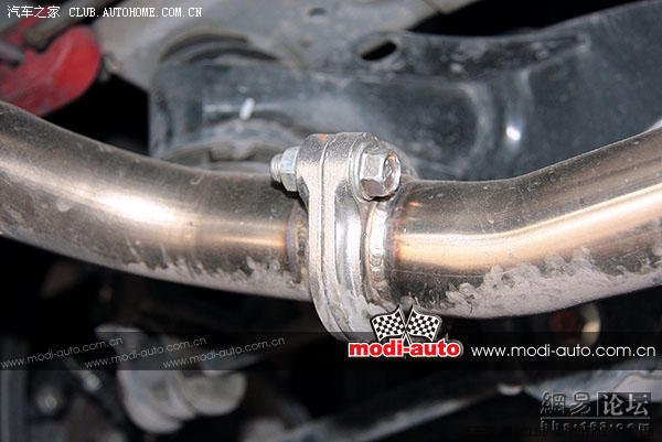 经过实地测量,前防倾杆直径26mm,后防倾杆直径为13mm。并为后悬挂装上强化横向撑杆,加固悬挂受力。