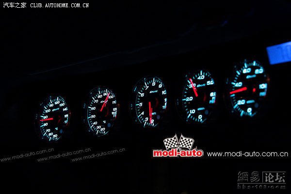 温、燃油压力、机油压力),驾驶位A柱下方还有一个DEFI涡轮增压值表。