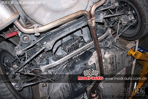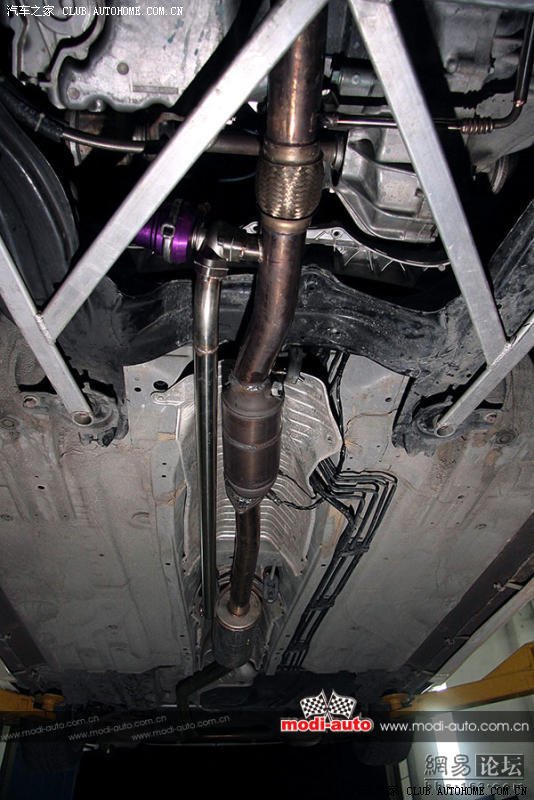 并列在无限中段排气管旁的是排气泄压装置,笔直地传到车底中央,以减少泄压声响传进车厢内。