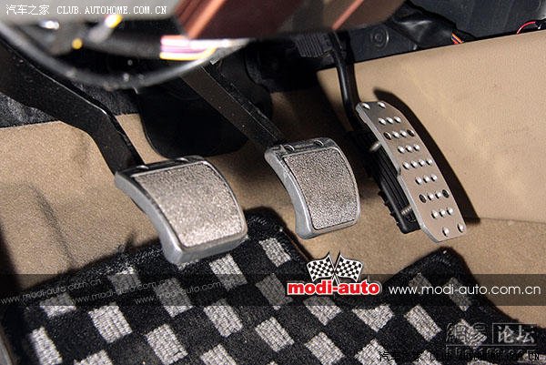 进入车内的第一印象是很多灯光,很多的灯光从仪表发出,有蓝、有白,行政房车里严谨的气氛被这些大量的外挂仪表、跑车化桶形座椅给悄然打破了,绅士形象全无!唯独一个新型四辐式方向盘尚握在手里,此时很容易就让笔者想起了同事一篇“绅士之怒”。