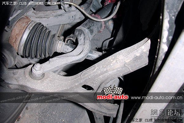 与上代CM雅阁一样,为迁就前半轴位置,前避震器的下受力点设计需要主动绕行避让。