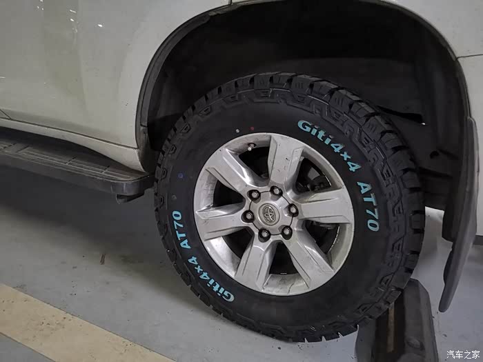 换AT胎后还没有机会走非铺装路面,100KM左右铺装路面使用感受如下:1. 在干路面上的摩擦明显增大。还没有遇到下雨,没有湿滑路面的体验。如果在原地没有速度情况下转弯(就是我们说的打死盘子)明显感觉方向盘重。在地库有漆的地面转弯有明显的轮胎摩擦尖叫声。2. 虽然是原车轮胎尺寸(265/65R17),但是明显感觉车辆更稳。新旧轮胎的胎压都是2.5,但感觉新轮胎的实际接地面积比旧轮胎大。3. 经过市内最高跑到80KM(二环高架上),高速最高130KM的检验,车辆没有出现任何共振、异响,方向盘也没有任何抖动。换轮胎前,车辆在速度接近120KM时,方向盘有明显的抖动(可以接受,不影响驾驶。这个情况是在前后轮胎交换安装后出现的)。换AT70后,这个问题也没了。普拉多的质量是不错的,7万多公里没有一点跑偏,换新轮胎后尝试在低速双手不把方向盘,车辆没有一点跑偏。个人感觉旧轮胎磨损后还是会影响轮胎的平衡,同时,新轮胎的配平弄还是不错的。4. 开始敲重点,油耗和胎噪,这是大家最关心的两个问题。简单的讲,油耗和胎噪都是有增加的。先具体说油耗。2700的一个特点是低速(个人总结是速度低于40KM,包括怠速)区间的油耗是很高的,经常都会被显示屏上高高的实时油耗柱状图弄的怀疑人生。感觉换了轮胎后,这个高油耗区间从速度低于40KM扩展到速度低于50KM的趋势。跑高速感觉还好,油耗增加似乎没有那么的明显。可能低速时轮胎的摩擦是影响油耗的主要因素,而高速上,空气的阻力是影响油耗的主要因素。没有计划持续跟踪油耗,具体油耗增加多少就不再深究了。噪音的加大也是一个不争的事实。但是2700的密封性还好,增加的噪音没有到影响乘坐人交流习惯的程度。