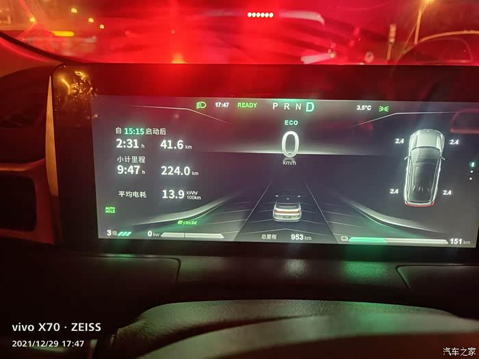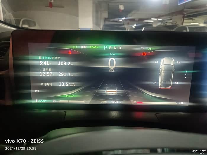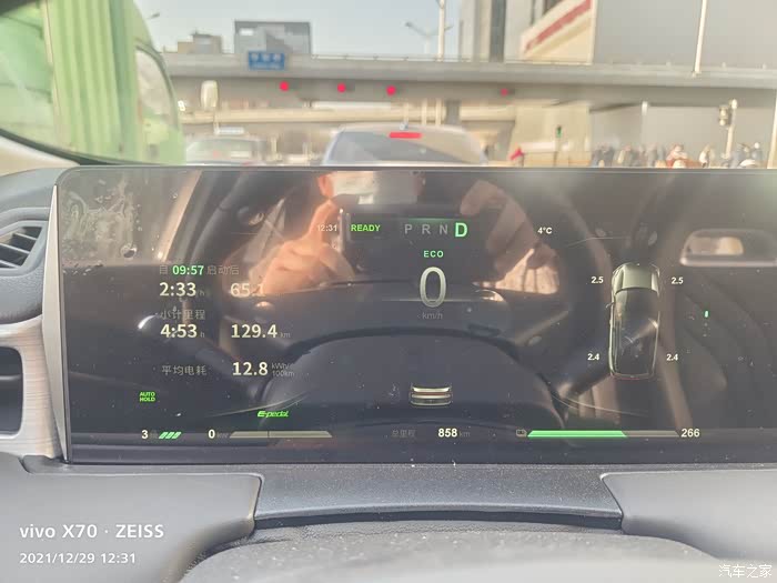 背景:昨晚慢充到满电400,充电位置地下车库。eco节能模式加上单踏板静止模式。