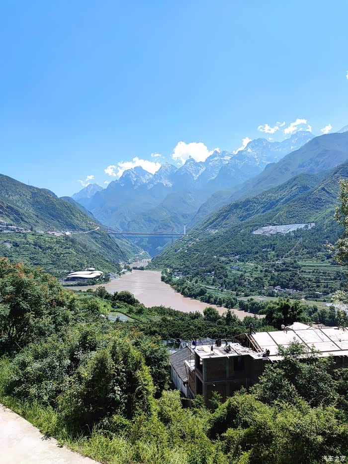 远望虎跳峡。明永冰川河在此汇入金沙江。