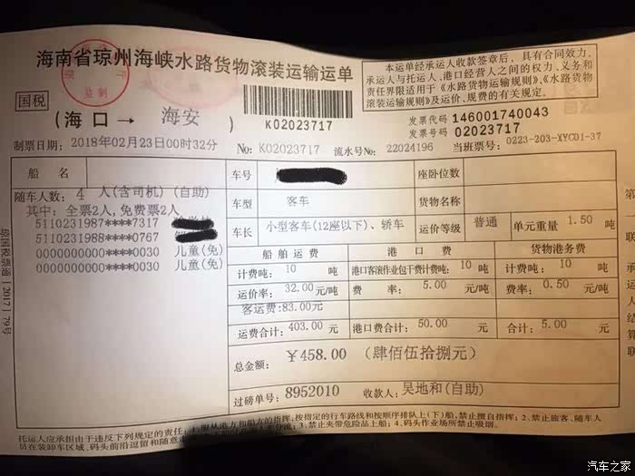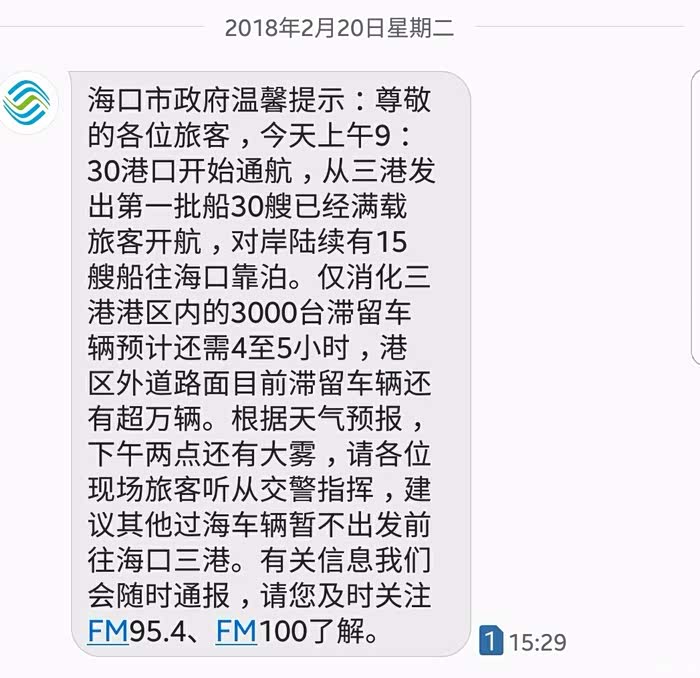 接下来就是回程了,相信今年的海南之旅是很多自驾游朋友们茶余饭后的谈资。在回程的前两天就在收音机里听说了因大雾天气滞留了不少车辆,所以我们计划是春节法定假期结束后第二天离岛,但是仍然遭遇了超级大堵车,我们是22日下午离开三亚出发去海口的,一路上都是三港口滞留车辆超1万的消息,我们也不是很着急,等在海口充了电吃过晚饭已经是晚上8点多了,本打算在海口住一晚,又怕第二天又是大雾走不了,于是决定连夜排队
