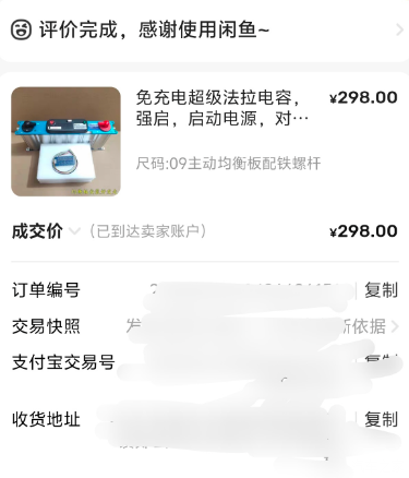 小黄鱼上买的电容,一定要注意电容的内阻要低于2毫欧,不然漏电大,对于经常停放不开的,有影响;