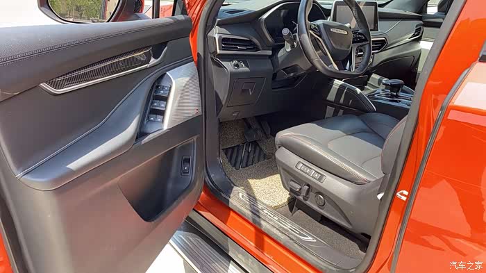 试驾车辆内饰黑色的,门板采用包覆+水转印工艺。