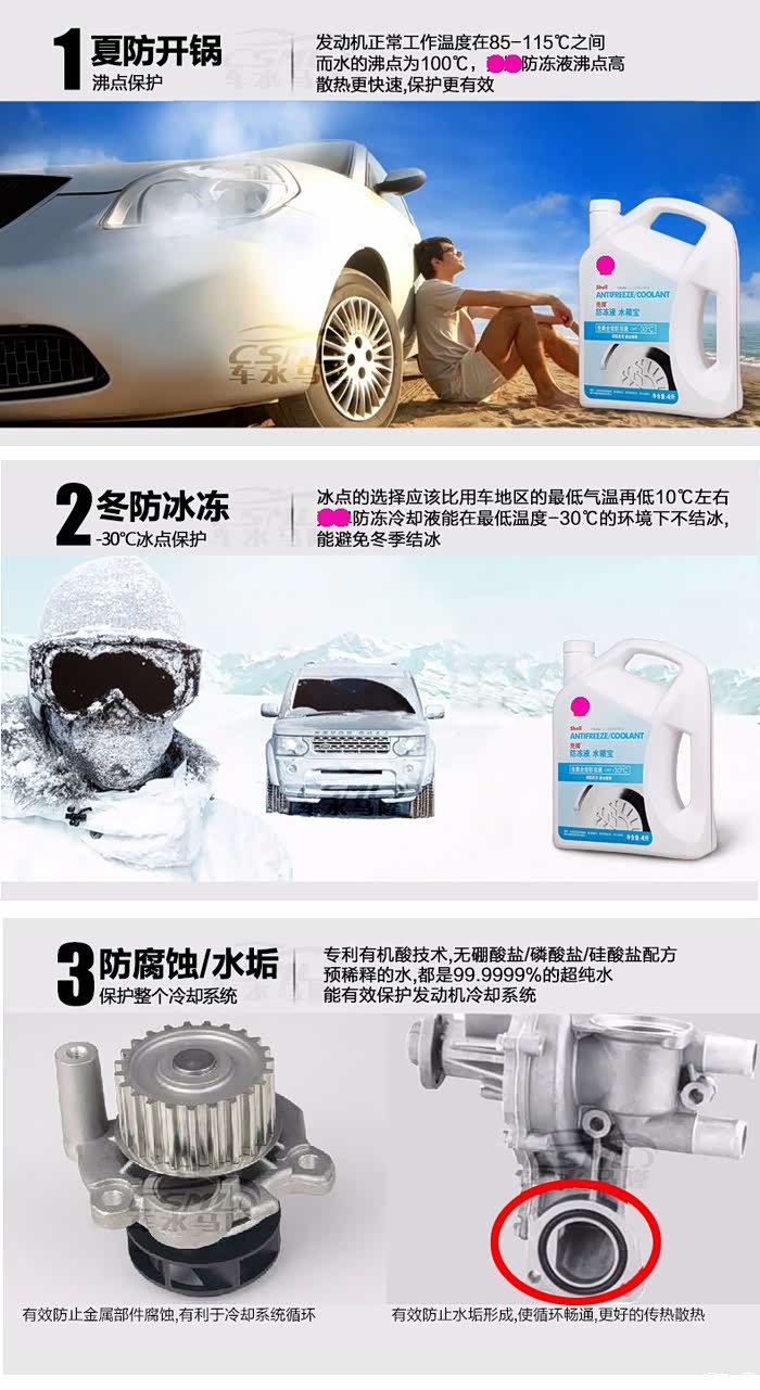 以前从网上了解到,说防冻液要更换颜色一样的,自己也不是太懂,后来咨询了老师傅,其实不是那么回事,各位小伙伴要结合自己所在地区的温度情况选择,与颜色没有关系,一般知名大厂的正品只要符合国标,都是可以用的。