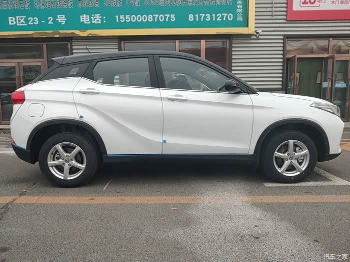 黑色的悬浮式车顶配合白色的车身,黑白配,时尚