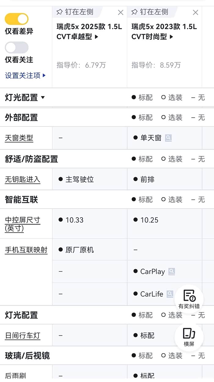 新款卓越版与2023,2024款自动时尚版本的区别是无钥匙进入由原先的前排改成主驾驶位,车机尺寸由原先的10.25升级为10.33英寸,天窗类型由原先单天窗取消了天窗,日间行车灯不知道可是取消了,待确认,车机car play和car life不知道是否取消待确认,后雨刮取消,还有啥差异,大家来说说