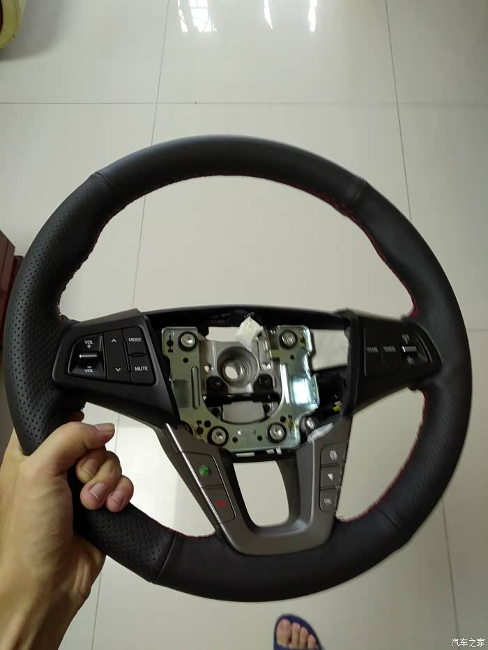 自己手缝真皮方向盘,手感不错,还有定速巡航模块,,安装了整整一上午