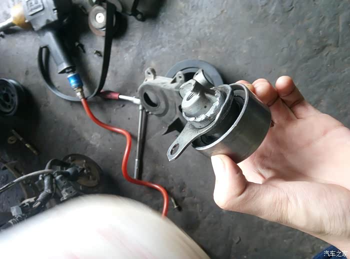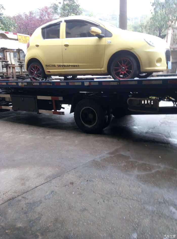 可能由于我的长期暴力操作,毕竟熊猫不是跑车,皮带轮被扯了下来,。第一次上了救援车