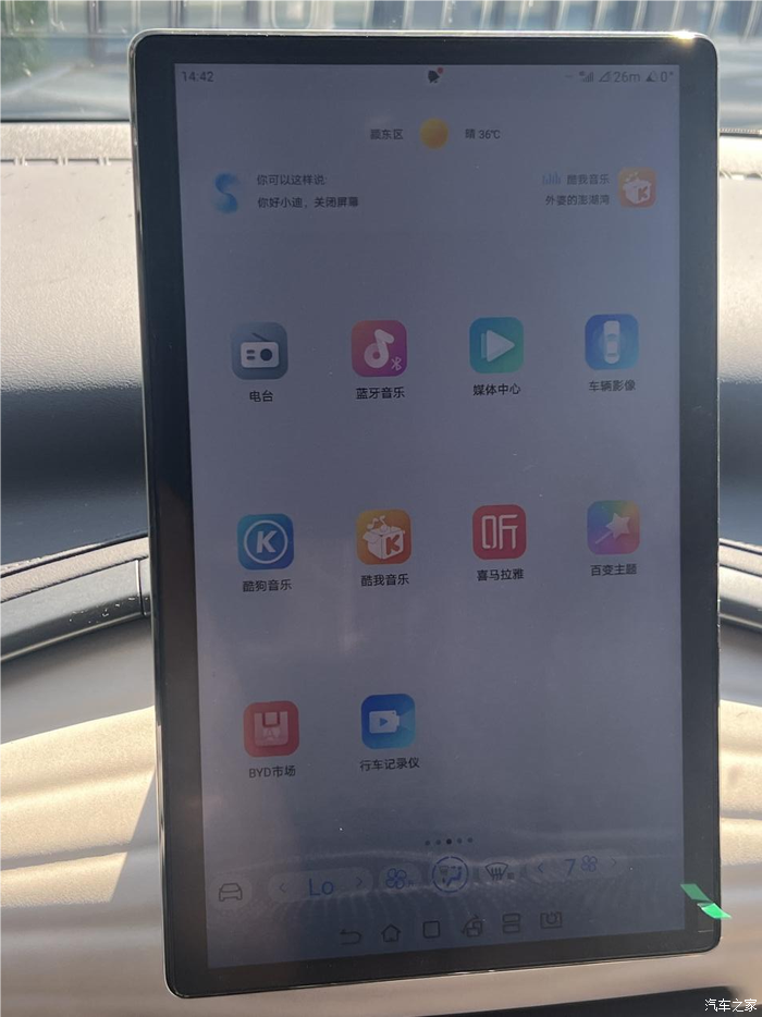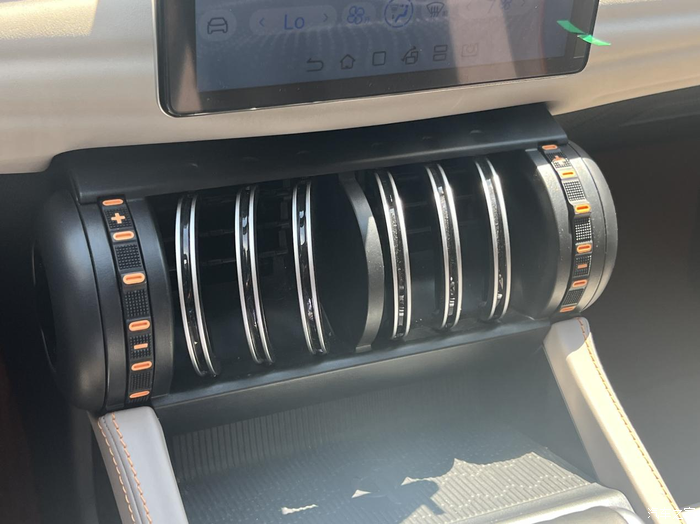 车里整体风格比较简约,不过各种配置还是很不错的。中控屏可以旋转,导航时用横屏,地图看得十分清晰;刷抖音时调成竖屏,就跟玩手机似的。