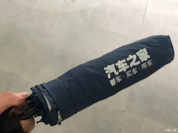 下雨了 刚好前几天汽车之家寄过来的雨伞可以派上用场了