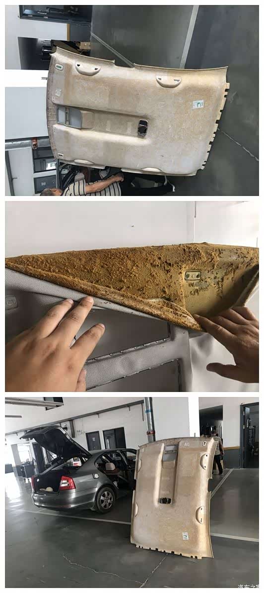 2,车子年限长了,顶棚和布之间的胶水老化脱落了;