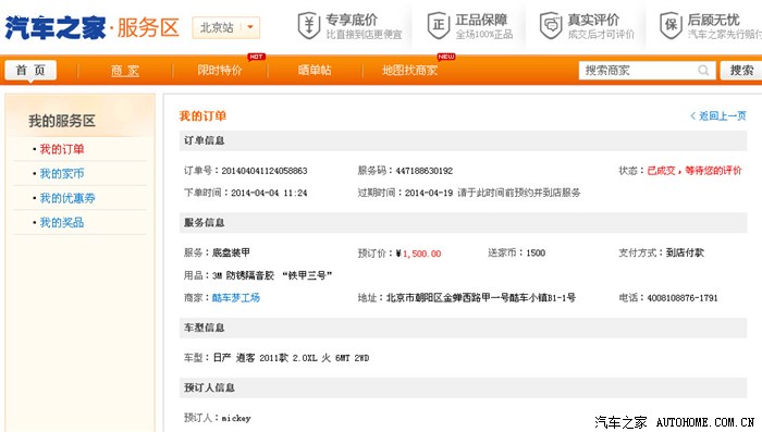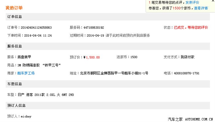 清明假期趁着汽车之家服务商搞活动.网上预约了3M底盘装甲.汽车之家认证服务商加上3M授权店双重保证.另外北京几位车友都已经施工过了.口碑相当好.那还等什么....