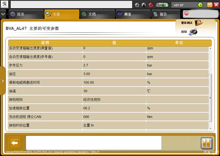 还有30%的换档品质问题,需要根据路试进行微调,调高后调低,不同的变速箱磨损不一样。我现在N档调到3.0换档都是平顺的,热车时还有2.7bar左右。