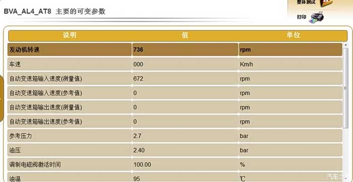1、D档油压稳定 波动在0.05-0.3以内。油压波动超过1bar的,建议检查油压传感器、更换蓄压器油环。