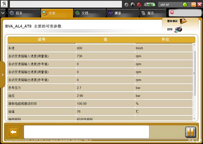 为了确认,油压高,换档快,入档硬的感觉。拿下电瓶,又把12版的电脑换上去了。热油还有2.9bar,开空调,转数高100转。