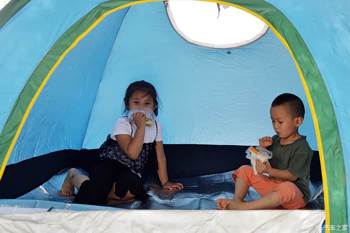 我们带着孩子和她的小朋友对于露营来说简直太兴奋了,这顶帐篷、防潮垫和吊床都是我们在网上买的,孩子们嬉戏打闹,零食不停的炫,还一直嚷嚷着烧烤啥时候能吃上。