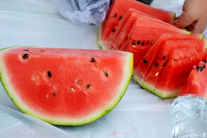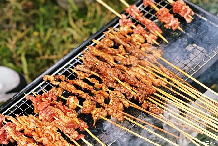 我们带了冰镇西瓜,放在保温箱内一直保持着冰凉爽口,烧烤所需的各种烤串也是提前用调料腌渍、串好的,自己动手在户外吃烧烤滋味自是不同,尤其是小孩子,对于吃这件事来说,胃就像是个无底洞。
