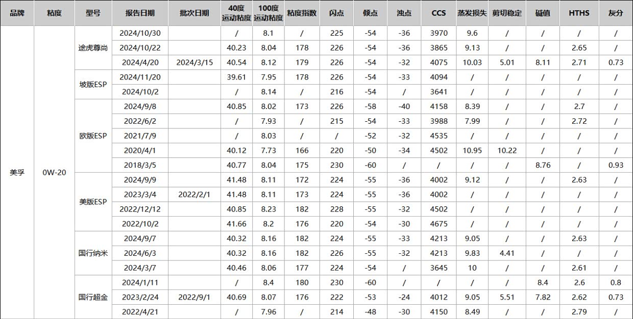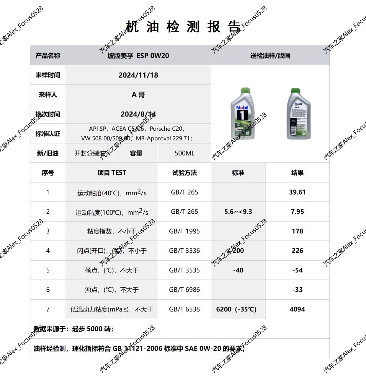 新加坡版美孚ESP 0W20新油送检(24年11月)【点击进入链接】