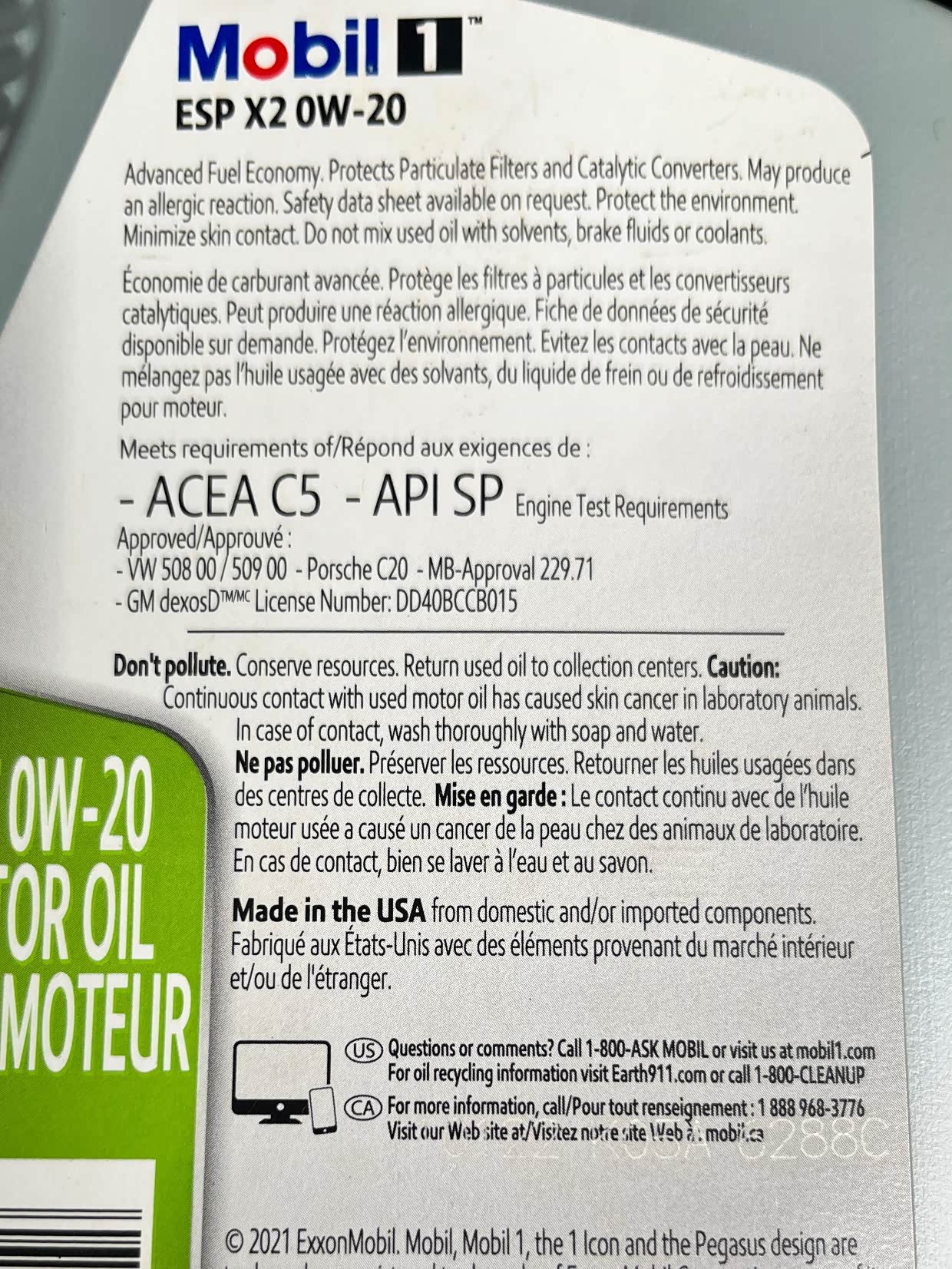 此次新油选择的是:美孚美版ESP X2 0W20,批次:2022年6月11日。