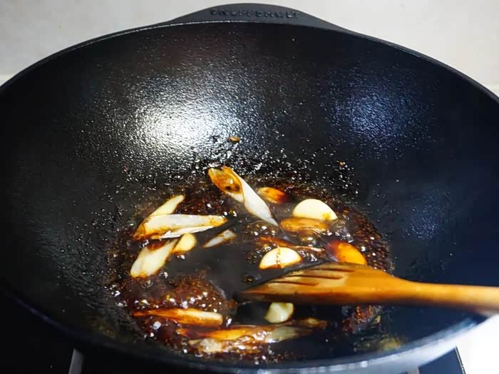 煎好的鸡腿的锅中会有一部分鸡油,将葱姜蒜炒香
