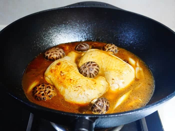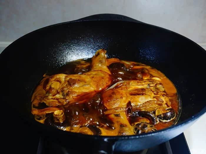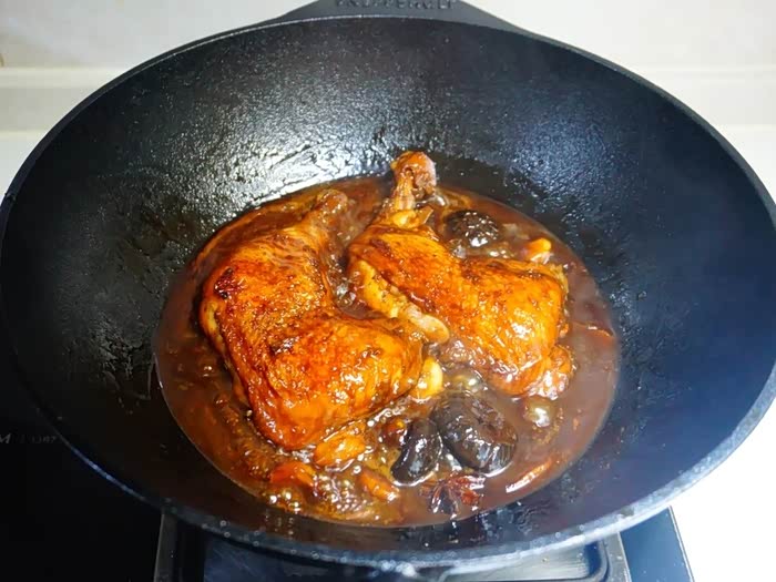 大约焖烧30分钟汤汁浓稠,鸡腿肉也上色差不多了可以调整火力再收一下汁