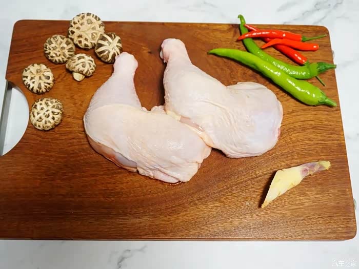 做这道菜所需要的材料并不多,鸡腿2只,花菇6个,葱姜蒜,鸡腿洗干净用厨房纸吸干水分