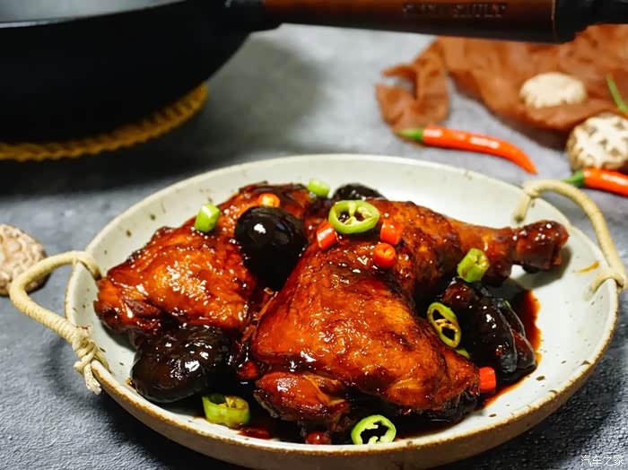 这道菜看似像红烧鸡腿实际上是用独特的川式焖烧酱所焖烧完成的,浓郁的川香微辣中带有花菇的香气,既下饭又可口,绝对是下饭菜之一……