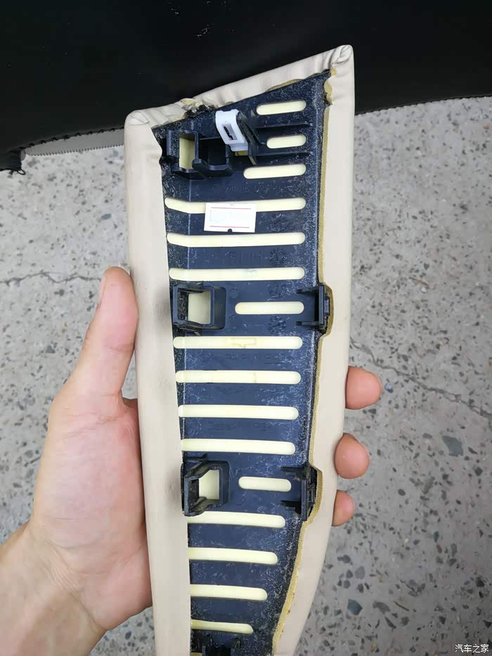 把真皮手垫拆下来的状态,这个垫子很好拆,用塑料撬板在皮和塑料的缝隙用力撬下就下来了