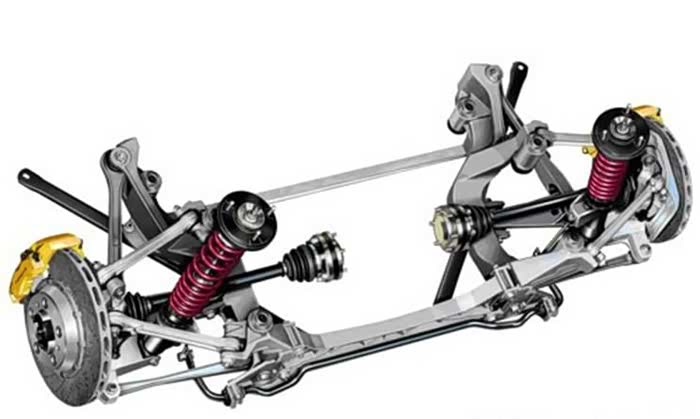 连杆式悬挂就是指由三根或三根以上连杆拉杆构成的悬挂结构,以提供多个方向的控制力,使车轮具有更加可靠的行驶轨迹。常见的有三连杆、四连杆、五连杆等。但由于三连杆结构已不能满足人们对于底盘操控性能的更高追求。因此结构更为精确、定位更加准确的四连杆式和五连杆式悬架才能称得上是真正的多连杆式,这两种悬架结构通常应用于前轮和后轮。其中前悬架一般为三连杆或四连杆式独立悬架;后悬架则一般为四连杆或五连杆式后悬架系统。