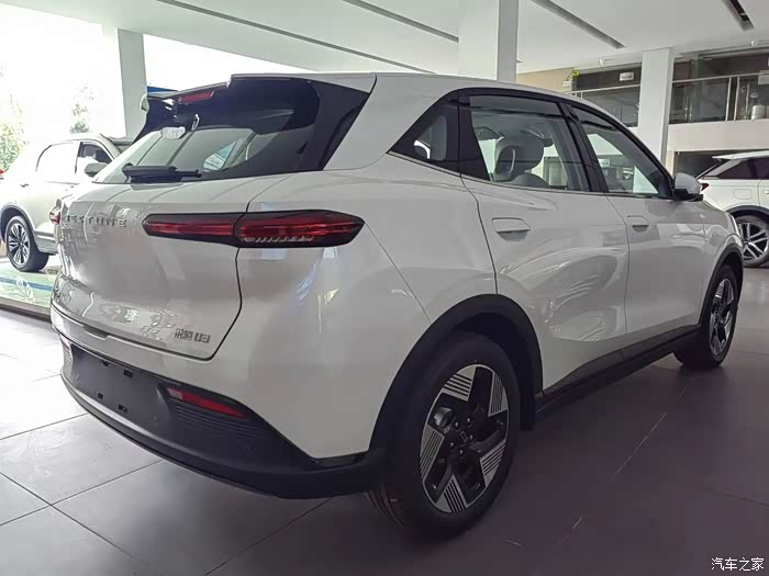 车身部分,悦意03以贯穿式腰线为设计核心,巧妙地勾勒出优美而灵动的线性轮廓,让车辆有一种破风前行的动感姿态。另外,半隐藏式门把手和低风阻轮毂也是神来之笔,在触发节能降耗的同时,也为车辆增添了几分美观性。