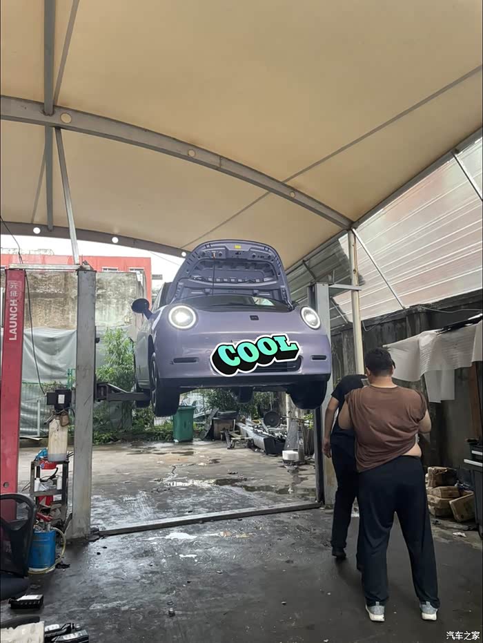 依旧是这个简陋的工位,掀开车盖,肉眼查看一番,然后加了两瓶玻璃水。