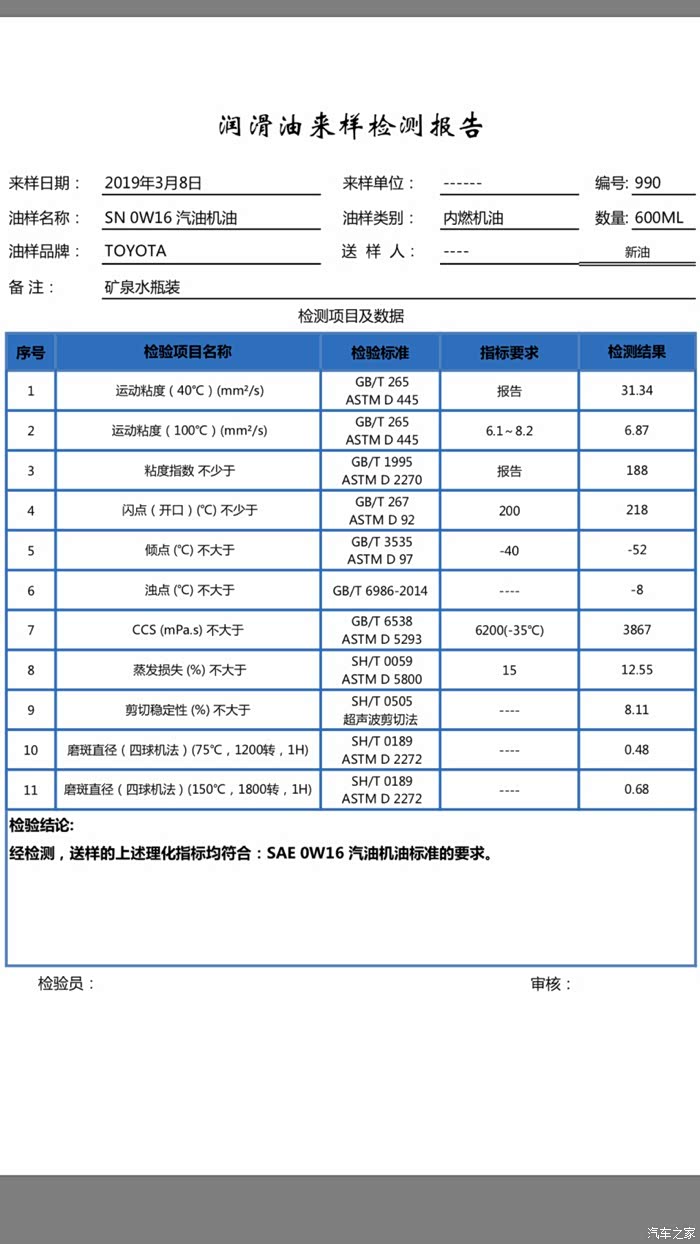 无聊在淘宝上搜了个混动尾标,贴了感觉效果还行,价格小贵1xx。随后请机油区的way大神测了丰田016机油的指标,除了浊点惨不忍睹,其它指标都还不错,四球磨损因为粘度关系所以指标一般。总的来说不适合北方冬天,长效性不高,5000一换没问题,偏省油+低温取向,适合混动车型使用,4s报价428一桶。